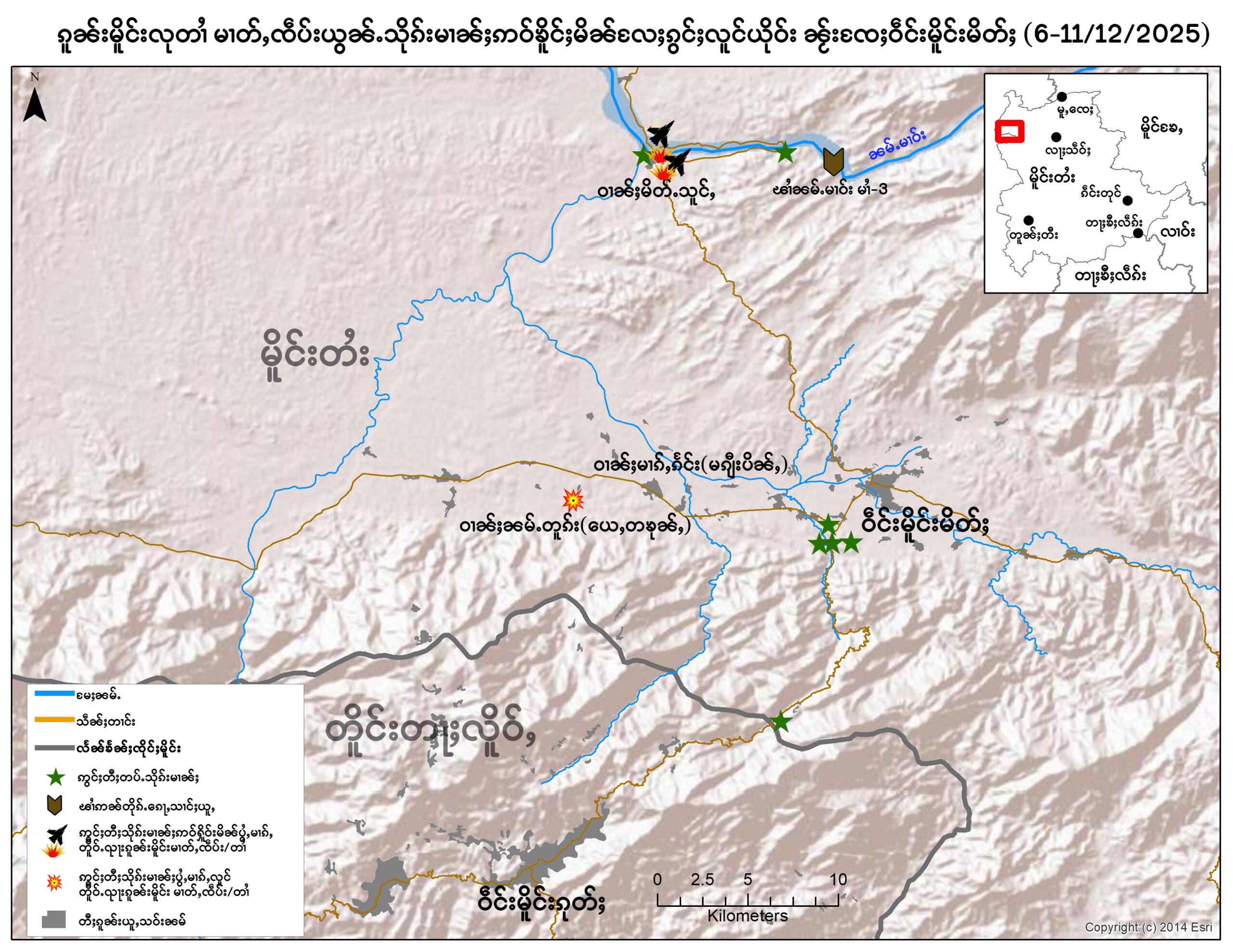မိူဝ်ႈဝၼ်းထိ 6/12/2025 ၶၢဝ်းယၢမ်း 9 မူင်းၵၢင်ၼႂ် သိုၵ်းမၢၼ်ႈဢဝ်ၶိူင်ႈမိၼ် သႅၼ်း Y-12 မႃးပွႆႇမၢၵ်ႇတီႈ ဝၢၼ်ႈၼမ်ႉၶွႆႈ (မျိတ်ႉၸူင်ႇ) ဢၼ်မီးႁိမ်းၼမ်ႉမၢဝ်းတၢင်းၸဵင်ႇႁွင်ႇဝၼ်းတူၵ်း ႁၢင်ႇၵႆဝဵင်းမိူင်းမိတ်ႈ 20 ၵီႊ လူဝ်ႊမႄႊတိူဝ်ႊ။ ဝၢႆးၼၼ်ႉ ၶၢဝ်းယၢမ်း 9:20 ၵၢင်ၼႂ် ၽွင်းၵူၼ်းဝၢၼ်ႈတိုၵ်ႉဢွၼ်ၵၼ်တေႃႉဢဝ်ၵူၼ်းမၢတ်ႇ လႄႈၵူၼ်းတၢႆယွၼ်ႉမၢၵ်ႇသိုၵ်းမၢၼ်ႈပွႆႇယူႇၼၼ်ႉ သိုၵ်းမၢၼ်ႈၶိုၼ်းဢဝ်ၶိူင်ႈမိၼ်တိုၵ်း Jet fighter မႃးပွႆႇ မၢၵ်ႇထႅင်ႈၵမ်းၼိုင်ႈ။